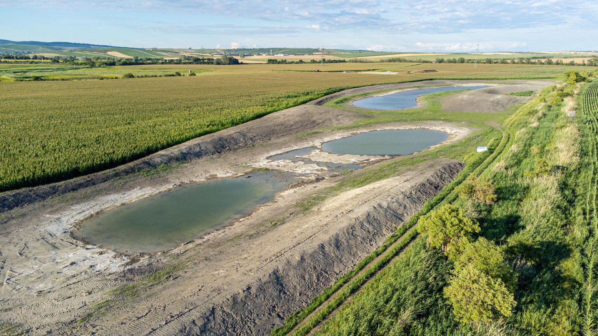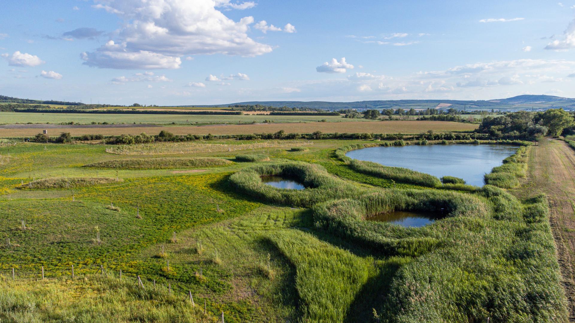 Předmětem projektu je výstavba mokřadního biotopu s vodními tůněmi. Návrh je koncipován jako prvek revitalizace krajiny v rámci opatření ke zlepšení životního prostředí. Účelem stavby je podpora biodiverzity se zaměřením na uchování a zvyšování početnosti druhů, realizované především vytvořením vhodných podmínek pro jejich existenci. Rozsáhlé vodohospodářské úpravy provedené v povodí řeky Dyje ve druhé polovině minulého století vedly k odvodnění krajiny a jejímu následnému intenzivnímu zemědělskému využívání. V důsledku toho zanikla celá řada přírodních ekosystémů, zejména cenné vodní a mokřadní biotopy. S nimi zmizelo mnoho druhů rostlin a živočichů vázaných na tato prostředí. Záměr předpokládá souvislou regeneraci mokřadního biotopu v několika izolovaných segmentech prostřednictvím zemních úprav se zajištěním dostatečné vodní bilance prohloubením stávajících terénních depresí (s cílem dostatečného obnažení pokleslé hladiny podpovrchových podzemních vod s maximálním prodloužením každoročního jarního zvodnění s trvalým zajištěním určitého vodního sloupce i po zbytek roku). Byla vytvořena vodní plocha o rozloze cca 2,1 ha s maximální hloubkou vody do 2m. Vytěžená zemina byla rozprostřena na dotčených pozemcích a zformována do částečně hutněných násypů, tzv. hrúd s průměrnou výškou do 6,0 m. V současné době se již zpracovává projekt na výsadbu zeleně podél těchto tůní. Zahájení stavby 2.11.2021, dokončení stavby 18.6.2022.