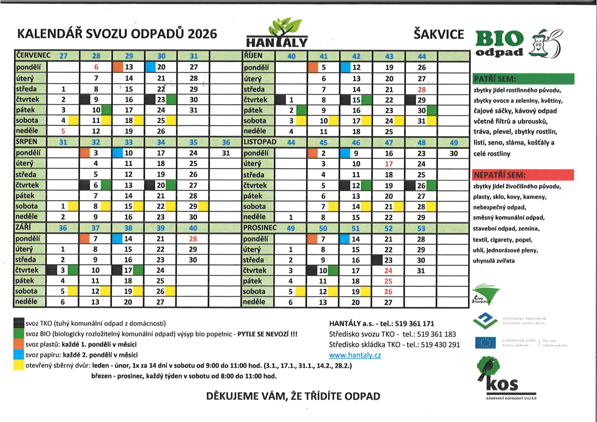 Kalendář svozu odpadů 2026